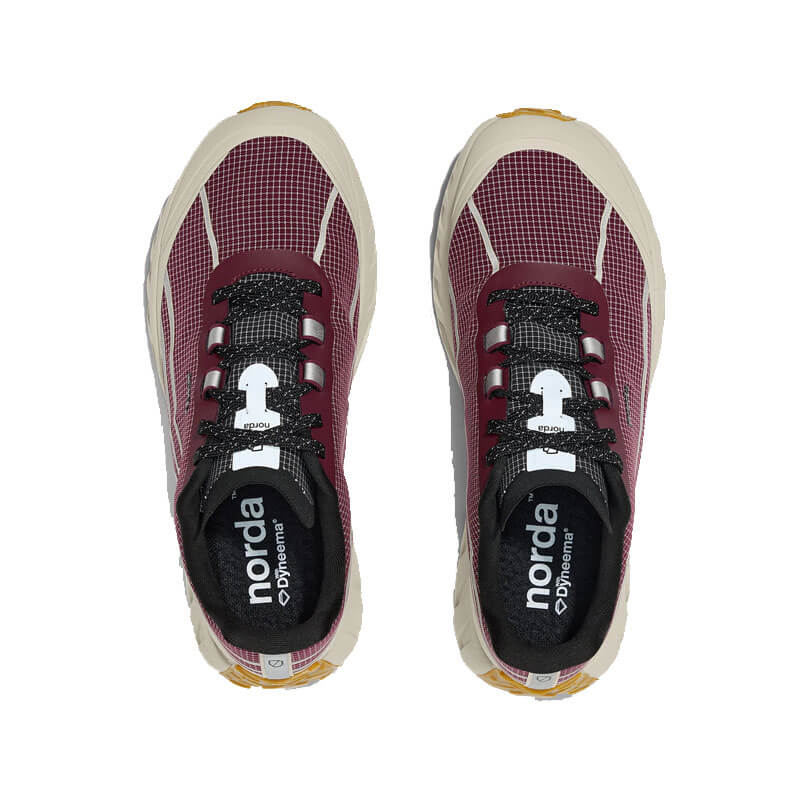 NORDA The 002 – Amaranth: Reach higher ground. Introducing the world’s most responsive trail running shoe for technical terrain made with bio-based Dyneema®.