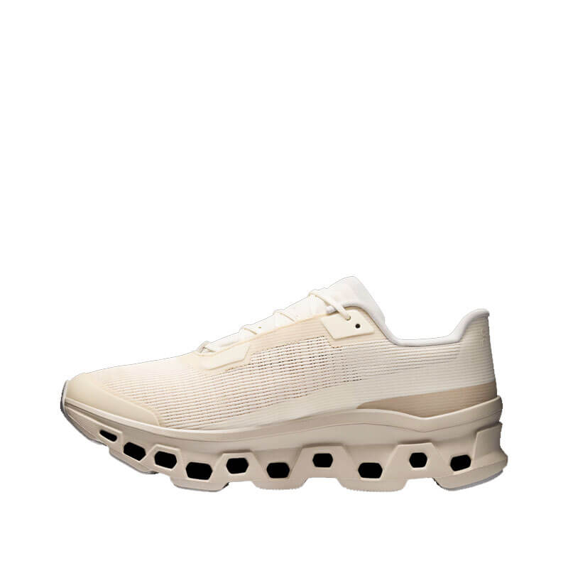 ON Cloudmonster Void – Dew / Truffle: The max-cushioned icon, redesigned for versatility and all-day wear.