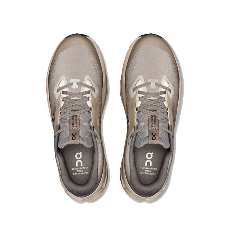 Included in the last FW25 delivery, this ON Cloudsurfer Trail 2 WP – Cinder / Desert features:
