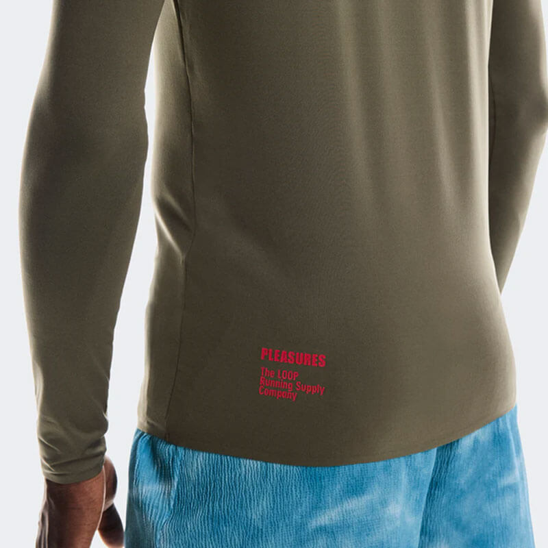 ON Long-T PLEASURES | THELOOP – Olive: Lightweight running top designed with PLEASURES x The Loop Running Supply Co., fusing style and performance.