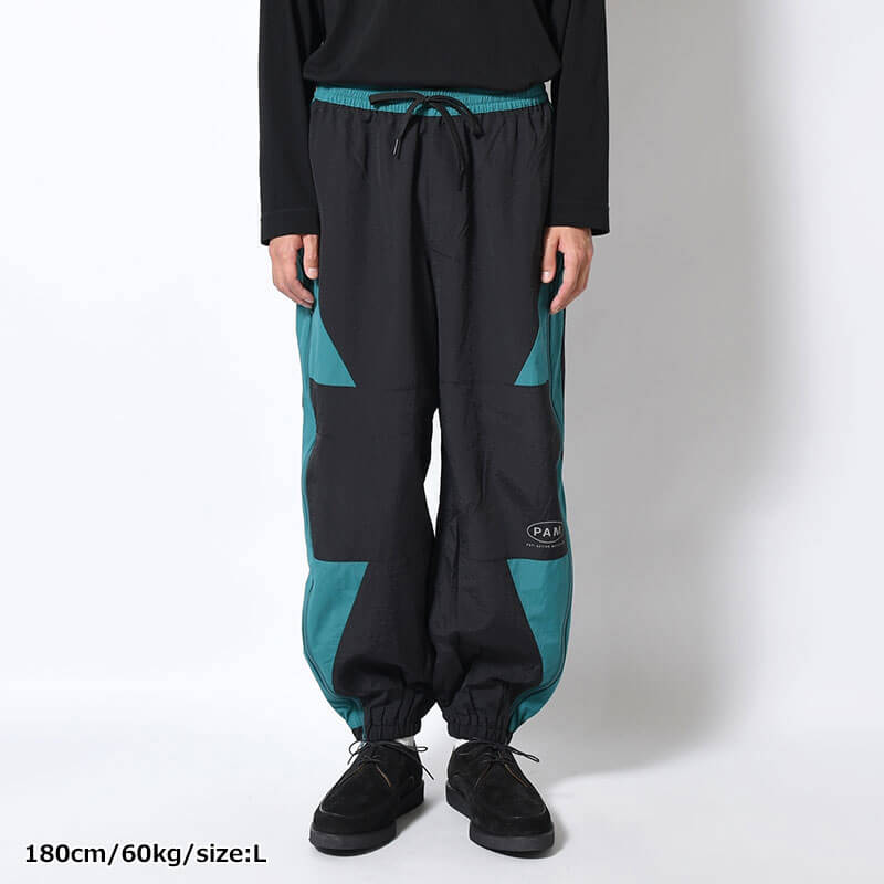 P.A.M. (Perks & Mini) Aktiv-8 Trackpant – Black / Teal: Trackpant crafted in nylon featuring contrast coloured panels.