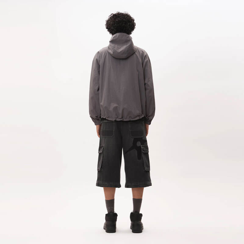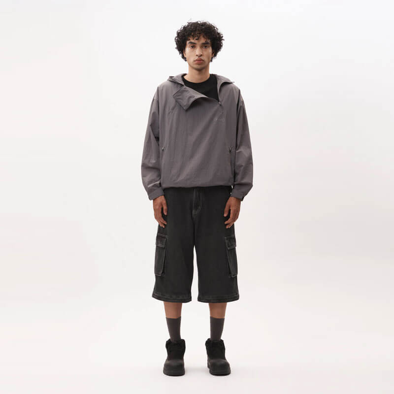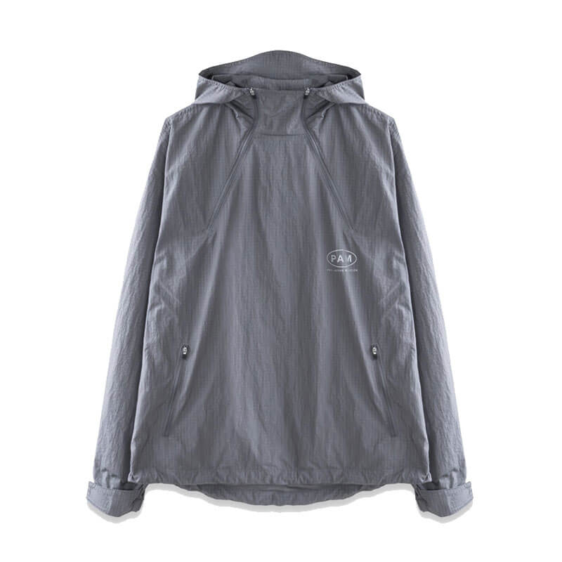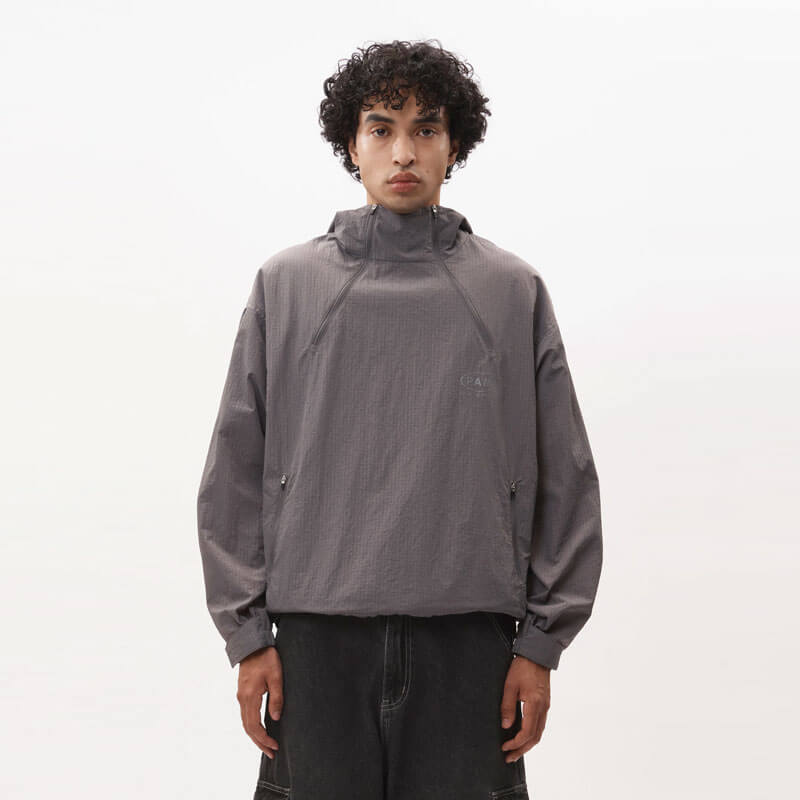 P.A.M. (Perks & Mini) Choose Entr’acte Spray Jacket – Grey: Pullover jacket with double half zippered closure. Crafted in a lightweight nylon fabric.