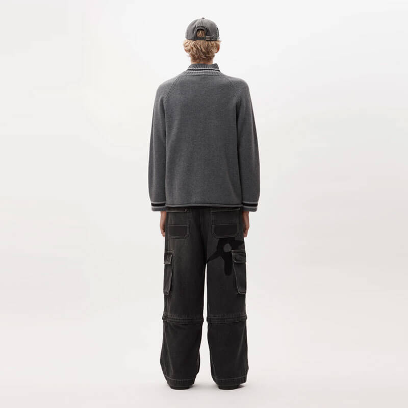 Included in the last Fall25 delivery from Australian brand, this P.A.M. (Perks & Mini) Eyes Zip Thru Knit Cardigan – Black / Grey features: