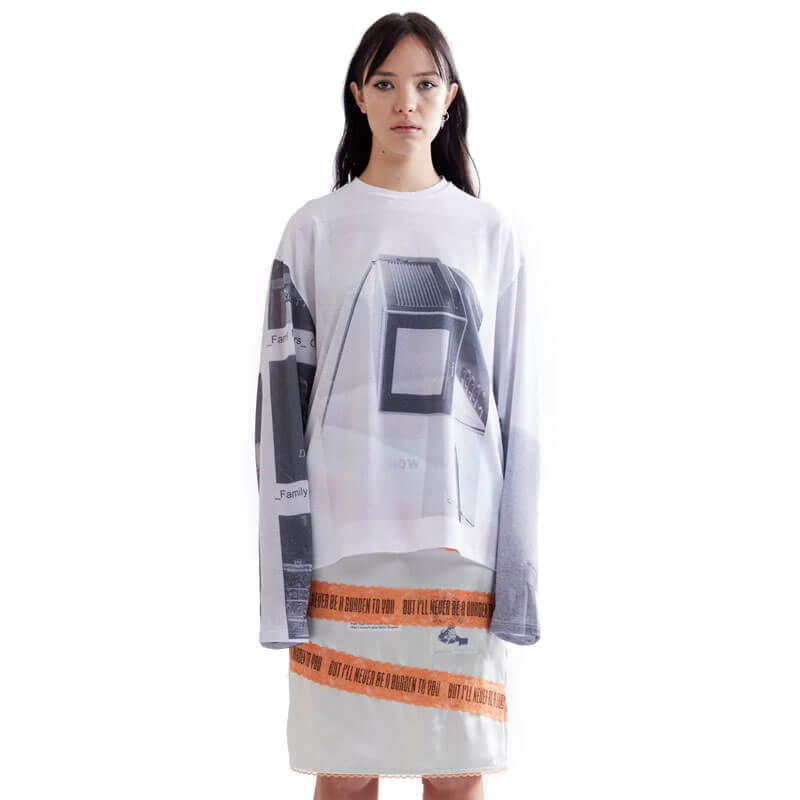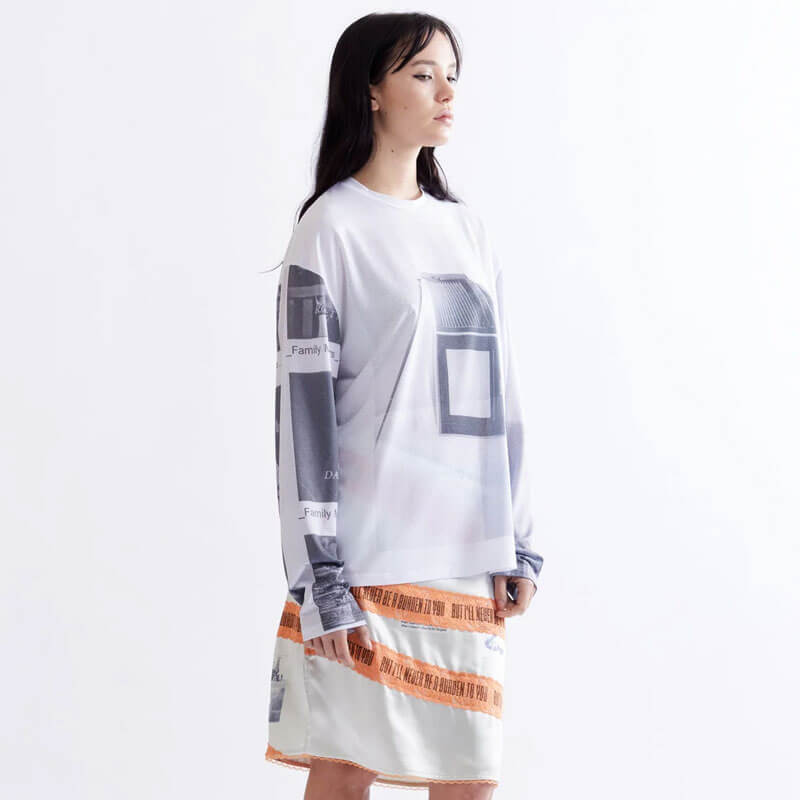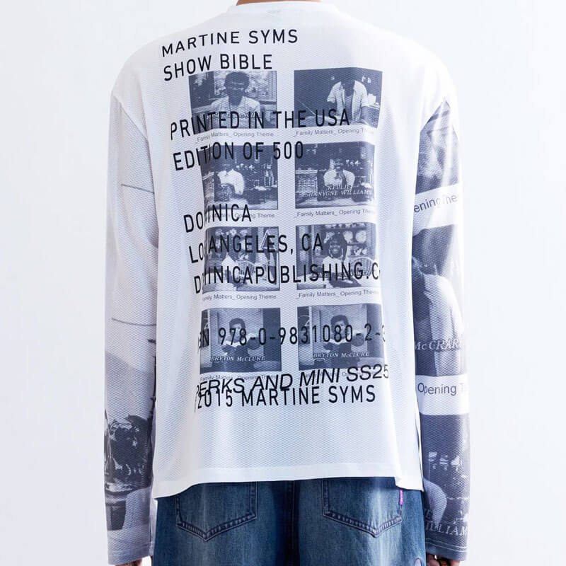 P.A.M. (Perks & Mini) Film Stills MTB LS Top by Martine Syms – White: All-over print long sleeve top crafted in a single layer mesh fabric. Graphics designed by American esteemed artist and filmmaker Martine Syms.