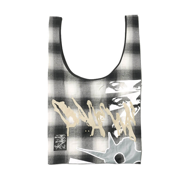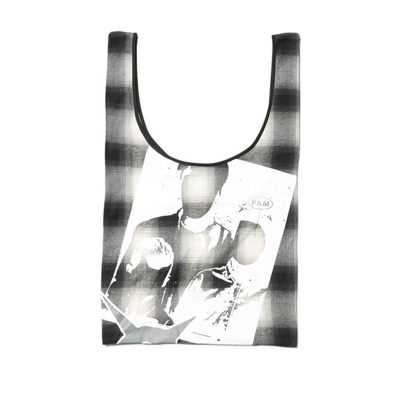 P.A.M. (Perks & Mini) Sketch Tote Bag – Check: Large U shape tote bag crafted in cotton plaid canvas and finished with seasonal print on top.