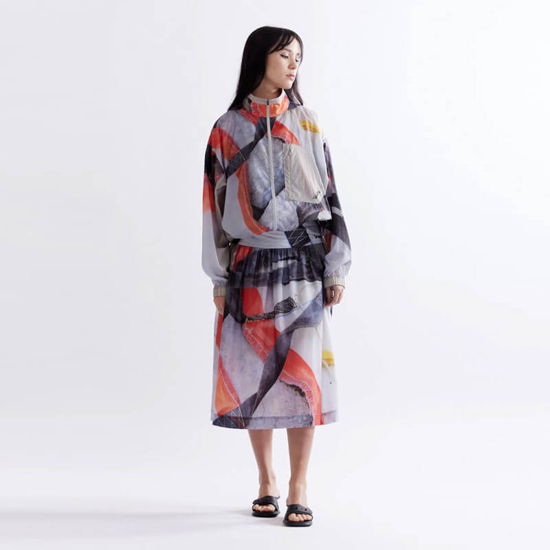 Included in the SS25 delivery from Australian cult brand, the P.A.M. (Perks & Mini) Transformation Light Weight Shell – AOP features: