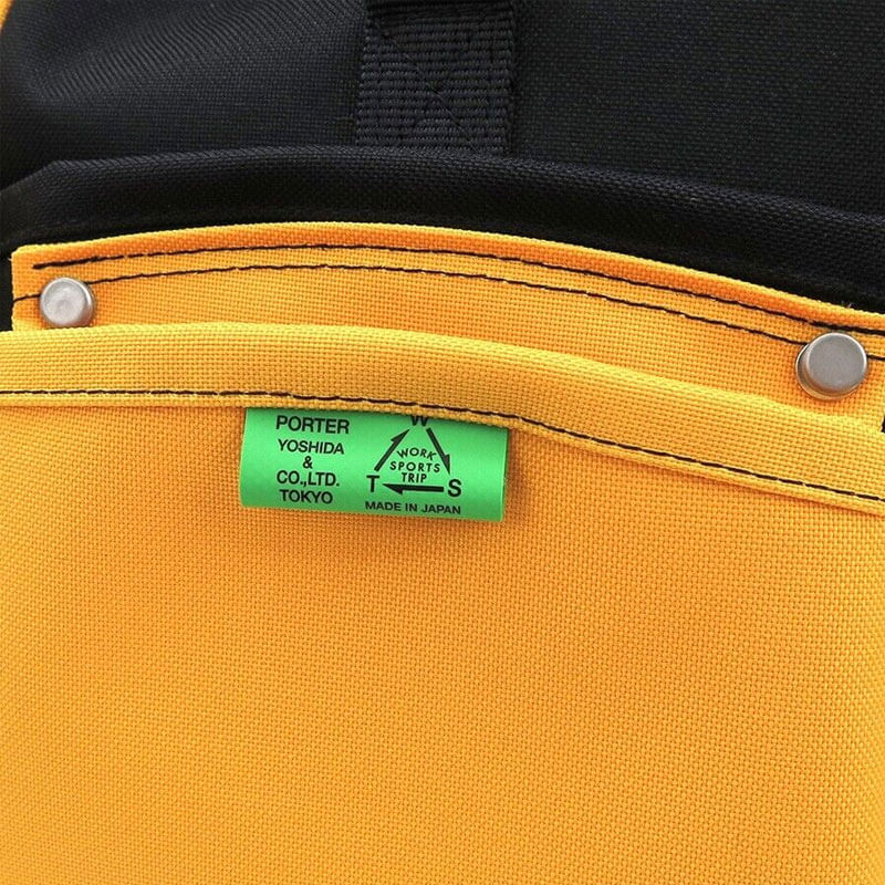 PORTER YOSHIDA & CO. Union Back Rucksack – Yellow / Black: Rucksack backpack inspired by workwear with multiple pockets. The distinctive front pocket features rivets and a striking green-coloured name tag. Also it are equipped with two long handles for easy handle and are designed to be highly functional and withstand hard use. This PORTER YOSHIDA & CO. Union Back Rucksack – Yellow / Black features: