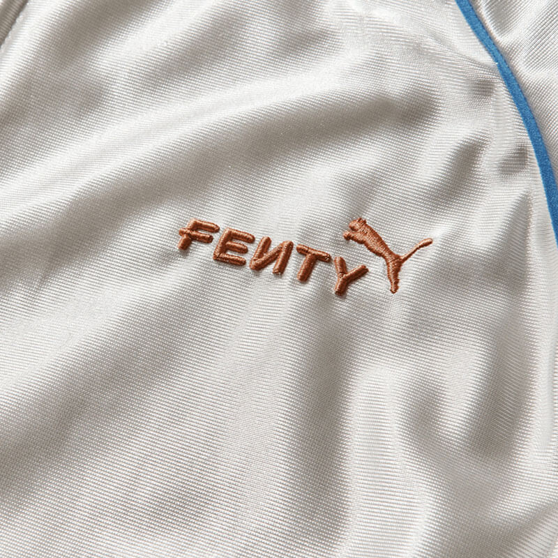 PUMA x FENTY T7 Track Jacket – Warm White: The new FENTY x PUMA drop reimagines heritage football through Rihanna’s unmistakable aesthetic. Blending sport and style as only Rihanna can, the collection boasts a vibrant colour palette that stands out on the field, in the street – wherever you play.