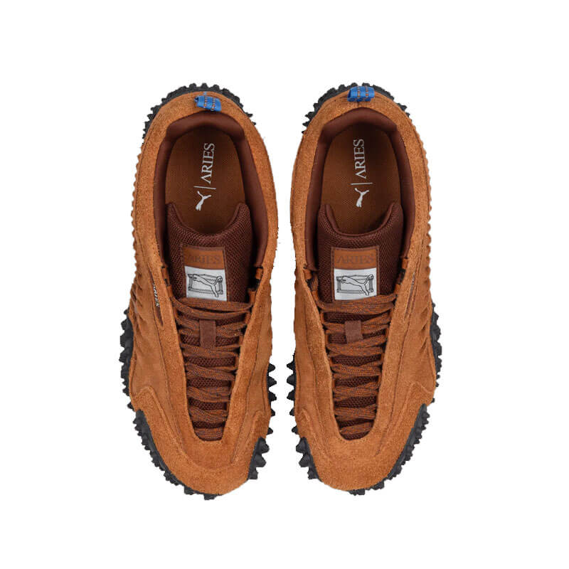 Included in the Spring-Summer25 delivery, this PUMA x ARIES Mostro Craft FS1 – Mahogany / Teak features: