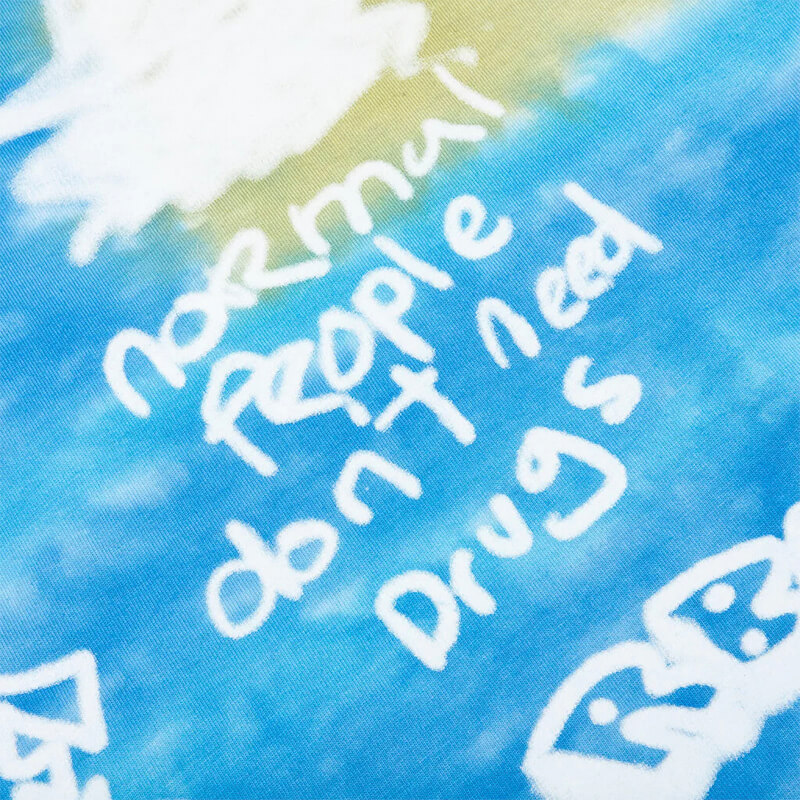 REAL BAD MAN Youth Party LS Tee – Blue Tie Dye: Longsleeve t-shirt printed at front and back. A bunch of graphics on front, sleeves and back as well as a tie dye finishing complete the design. Included in FW23 collection, this REAL BAD MAN Youth Party LS Tee – Blue Tie Dye features: