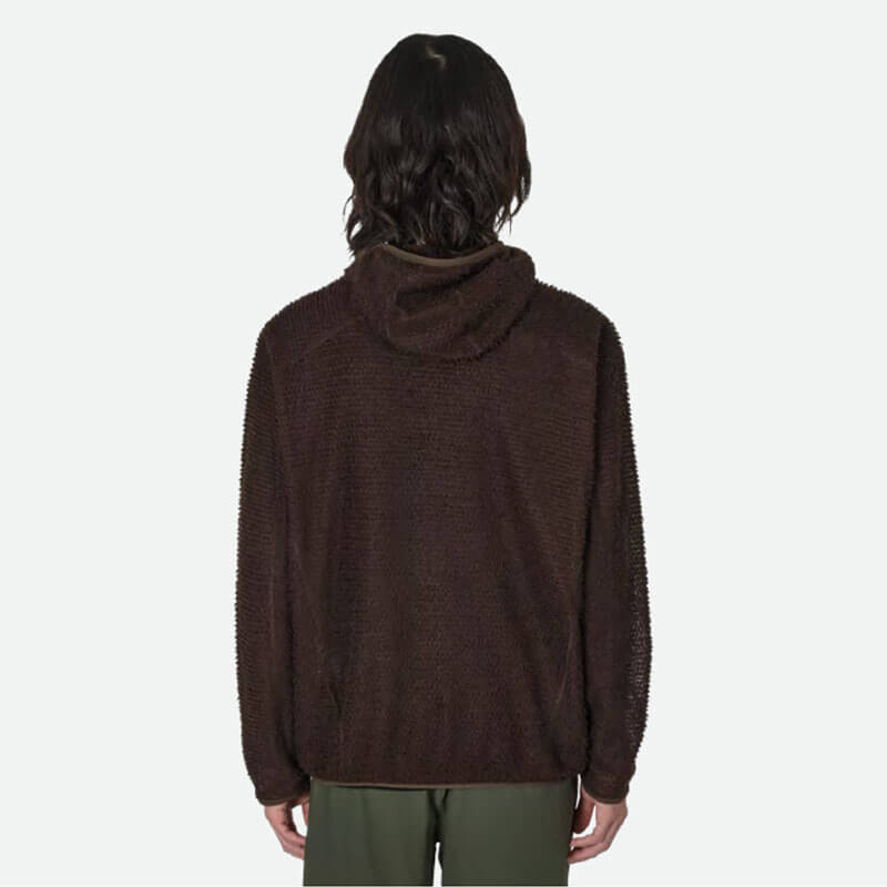ROA Hiking Alpha Direct Hoodie – Dark Brown: By refining the shape and size of its lofted fibers, this new material increases breathable performance, expands versatile style options, and further reduces overall garment weight. Thermoregulator, versatile for both cold and hot temperatures. Loose, cropped fit for comfort and mobility. Embroidered logo on the front. Elasticized cuffs