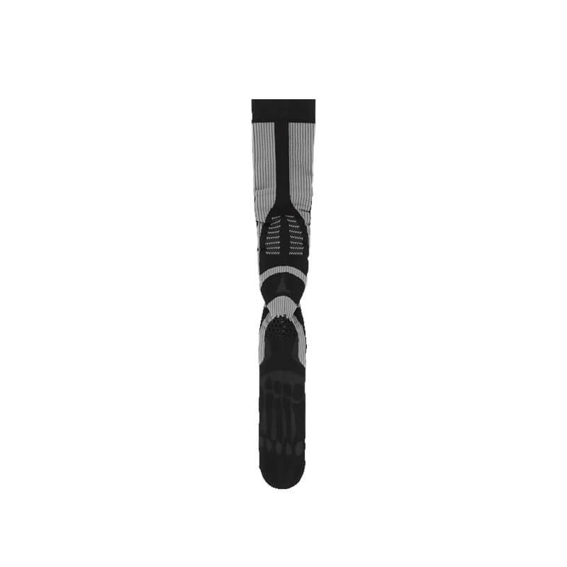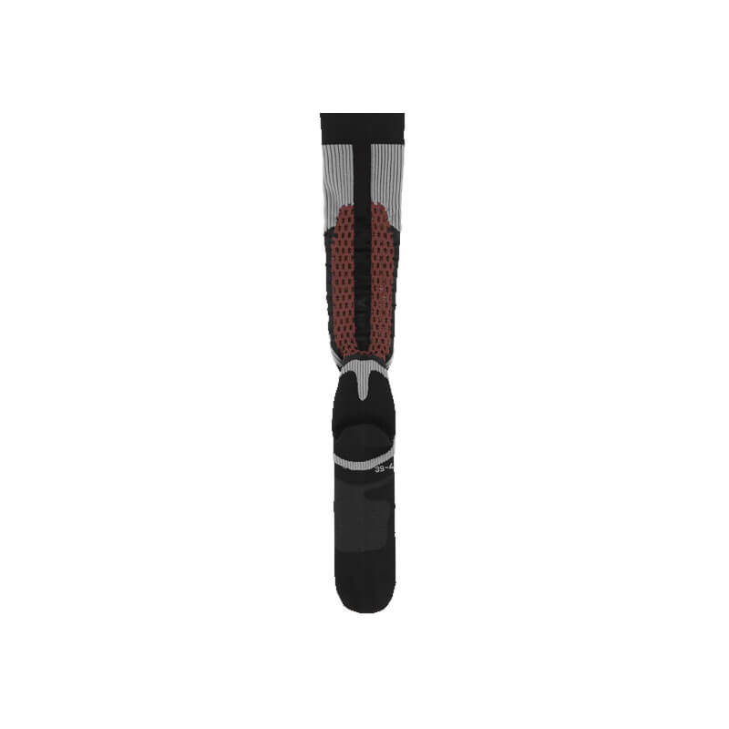 ROA Hiking Bones Long Socks – Dark Brown: Technical knee-high socks in contrast knit fibers, dark brown color. Uses breathable Q-skin® yarn with antibacterial properties to provide durable freshness and comfort. Bones design at the top of the foot. Logo graphic in the front and back.