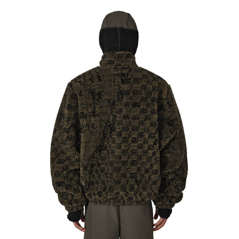 ROA Hiking Ewe Furry Jacket – Olive: The Ewe furry jacket in all-over olive color and black is crafted from warm fleece faux fur fabric, providing exceptional softness and insulation. Designed with a boxy, oversized fit, it features a high neck collar for added protection against the elements and elasticated hems and cuffs to seal in warmth. Zipped front pockets offer secure and convenient storage. Finished with an embroidered ROA logo on the front.