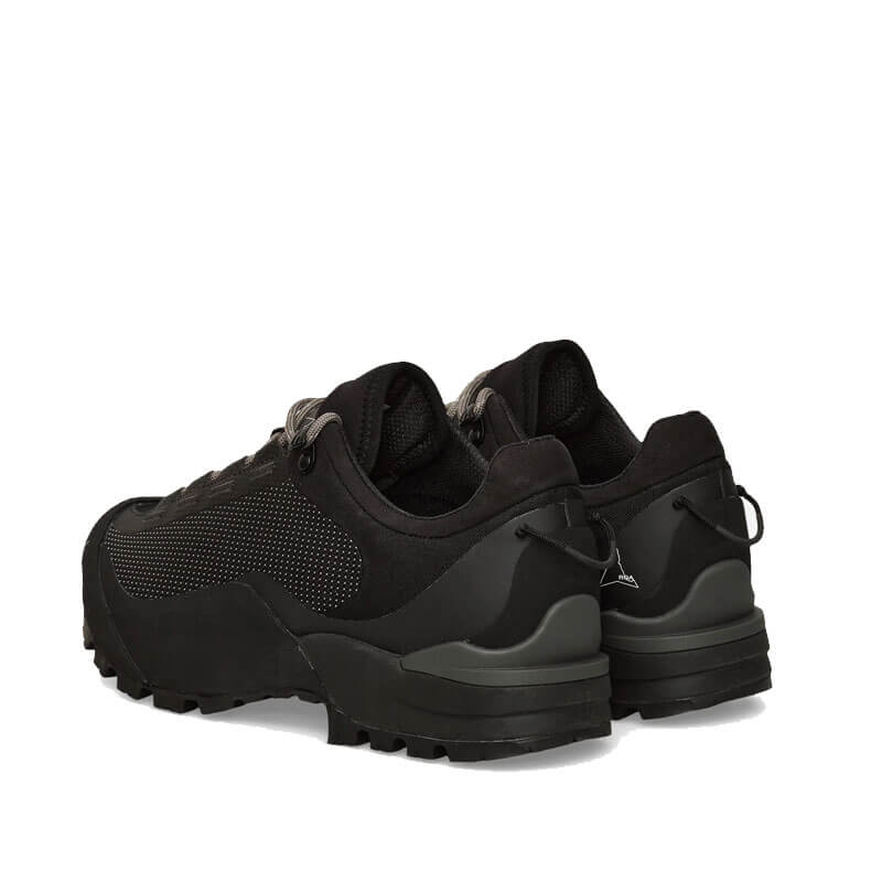 ROA Hiking Hida Low – Black: ROA’s Hida Low draws its name from the rugged Hida Mountains in Japan. Designed to be structured and appropriately rigid, this low-cut shoe in black color ensures excellent foot support and protection, enabling safe navigation over rocky terrain, rock passages, and snowfields without compromising the comfort required for multi-day treks. Ideal for those venturing into mountaineering, it offers versatility for tackling mixed terrains. The sturdy reflective Cordura upper provides durability and visibility. A stretch mesh pocket on the tongue secures and hides the laces for added functionality.