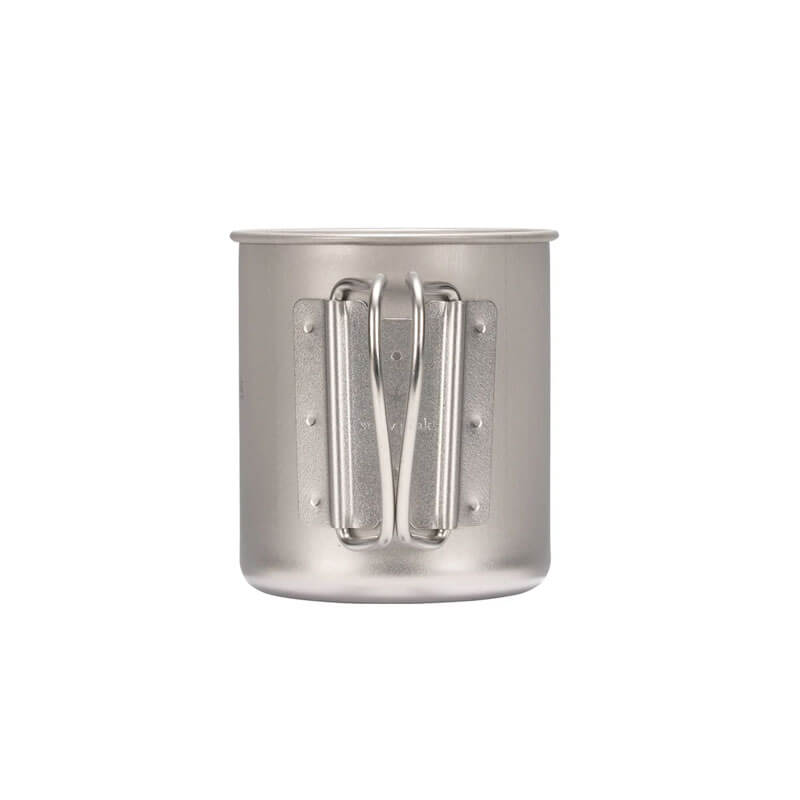 SNOW PEAK Titanium Single Wall Mugs 300ml: The Ti-Single 300 Mug is made of ultralight Japanese titanium. Designed for everyday use and backcountry excursions, the Ti-Single 300 Mug can be placed directly over a heat source for cooking or warming. The mug features foldable handles for compact storage and is built to last.
