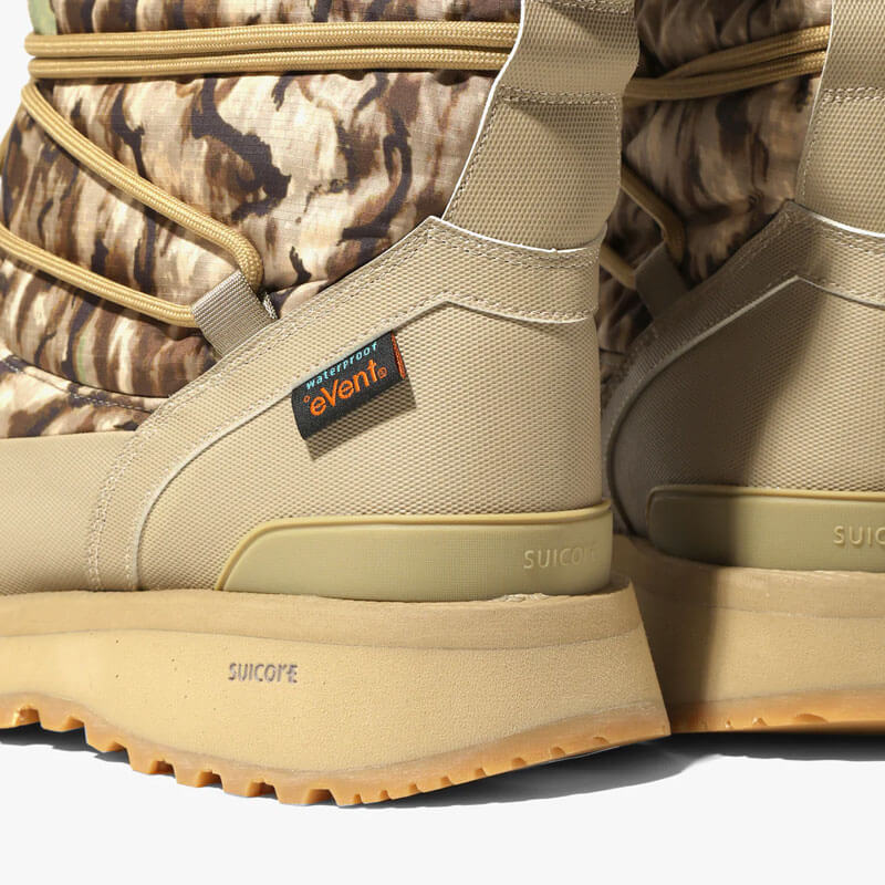 SOUTH2 WEST8 x SUICOKE Bower-evab Hi-Lace – Beige: Based on SUICOKE’s multi-functional Bower, a boot that covers everything from winter town use to outdoor activities. The lining uses Event waterproof and breathable material that is resistant to snow and water, and the batting uses 3M Thinsulate for lightweight and excellent heat retention. Original print from S2W8 is featured across the upper.