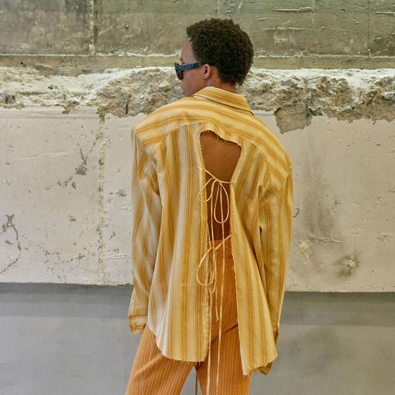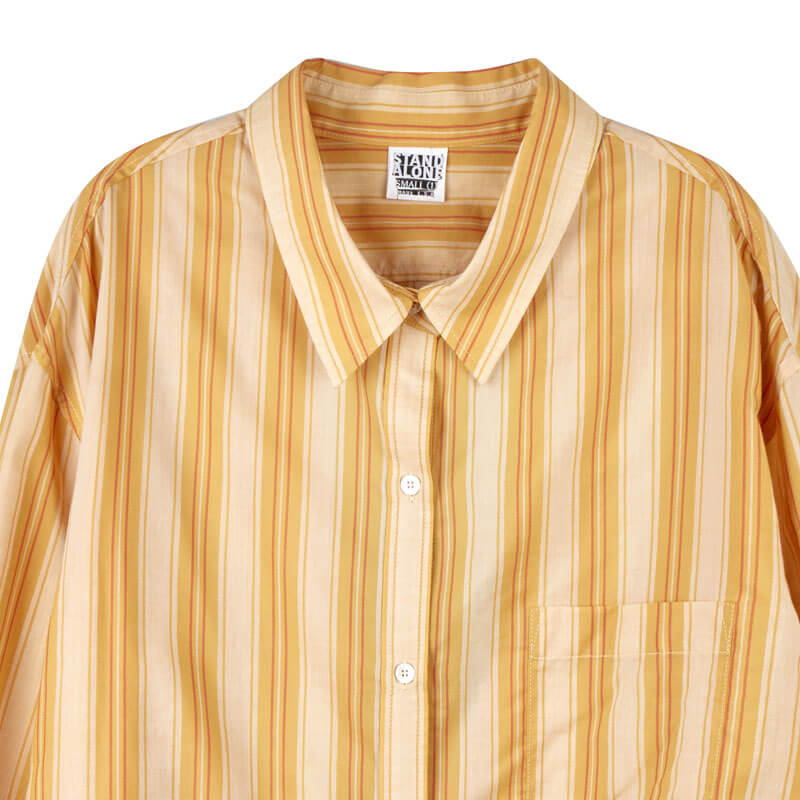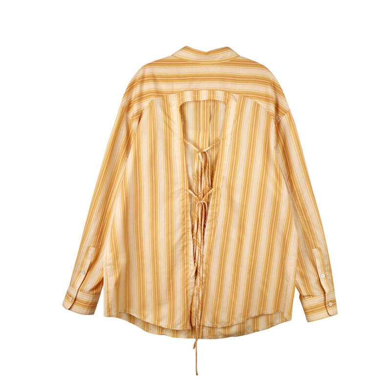 STAND ALONE Striped Back-Tie Shirt – Yellowy: Longsleeve shirt crafted in a striped tencel fabric. Featuring an open back with tie fastening detail, this STAND ALONE Striped Back-Tie Shirt – Yellow is included in Spring-Summer23 collection and features:
