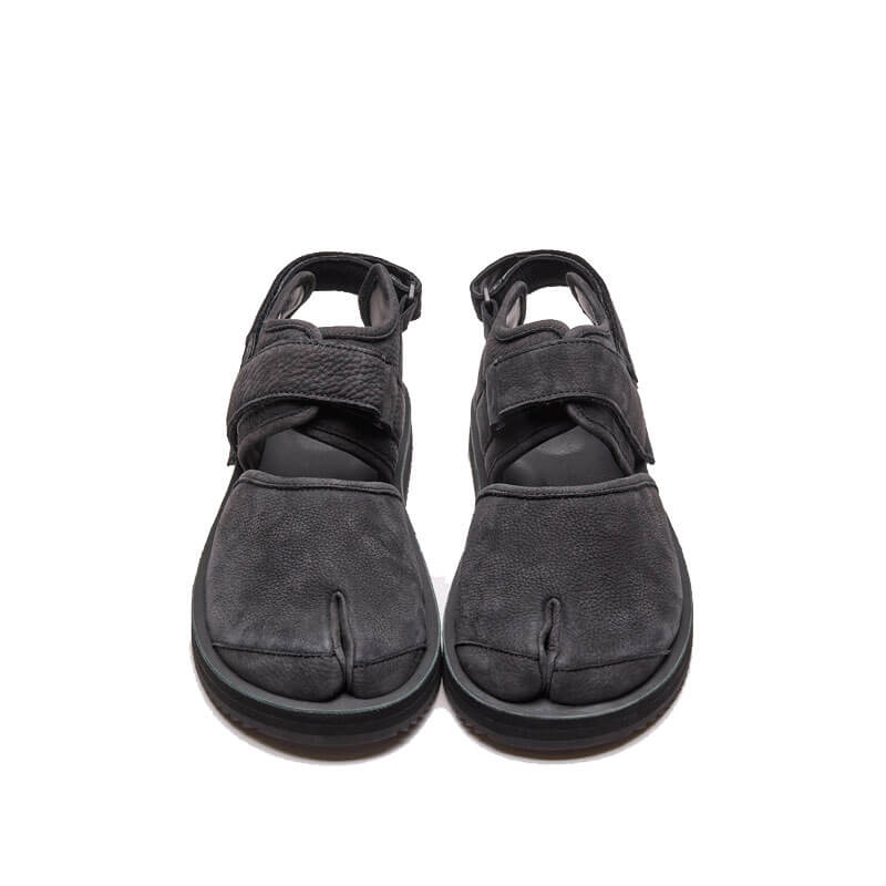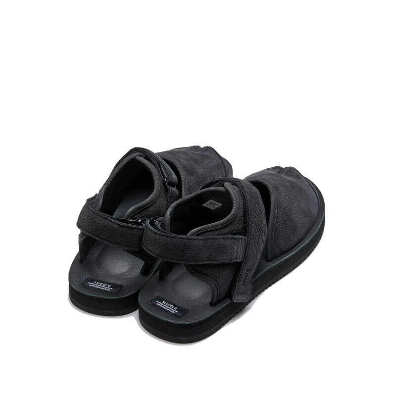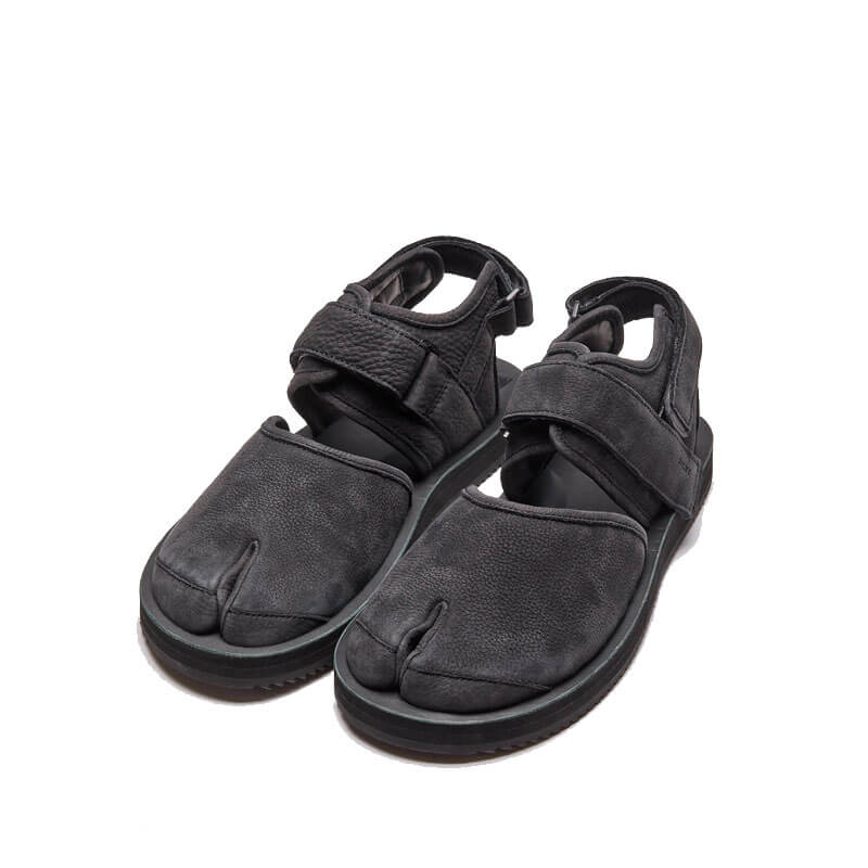 SUICOKE Bita-2-L – Black: The brand-new BITA-2-L is produced using premium ECCO Leather: a luxury update to our popular BITA model – a hybrid blend of sandal construction with traditional tabi footwear and modern sneakers. Completed with an original SUICOKE leather footbed and EVA midsole, and featuring Vibram’s Megagrip compound outsole for enhanced traction and durability across wet and dry terrain.