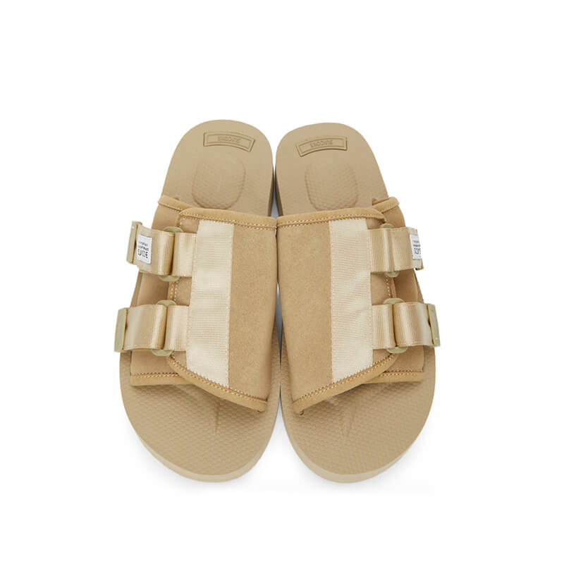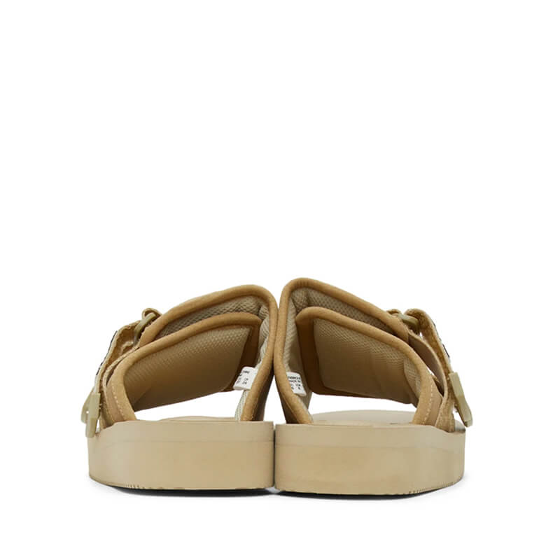 SUICOKE Kaw-VS Sandals – Beige: Suede slip-on sandals in beige with ergonomic insoles and VIBRAM soles that offers high shock absorption. This Suicoke’s sandal features: