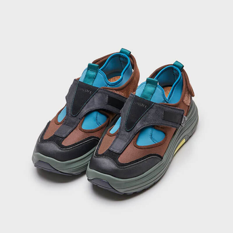 SUICOKE Tred – Brown / Green: A new design to SUICOKE, the TRED seeks to introduce a fresh, modern take on sneakers and comfort-focused footwear. Produced with a variety of materials across the upper, the design is simultaneously contemporary and futuristic – and completely SUICOKE. Utilising the also-new RUNNING.2 outsole for premium comfort and functionality, the sneaker style is finished with adjustable velcro straps to the tongue for easy accessibility and wear.