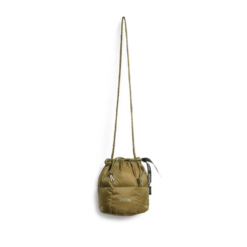 The TAION Drawstring Down Small Bag – Beige has a simple and timeless minimal design that has been included in Taion’s FW23 collection and features:
