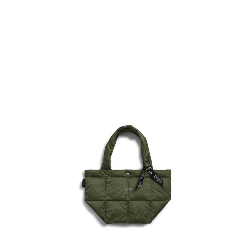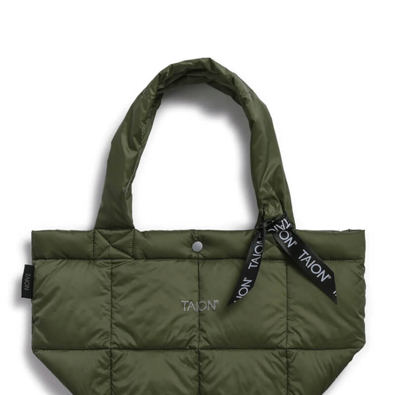 The TAION Lunch Down Tote S – Dark Olive has a simple and timeless minimal design that has been included in Taion’s FW23 collection and features: