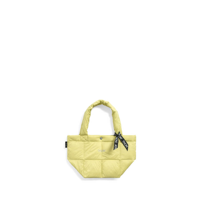 The TAION Lunch Down Tote S – Lemon has a simple and timeless minimal design that has been included in Taion’s FW23 collection and features: