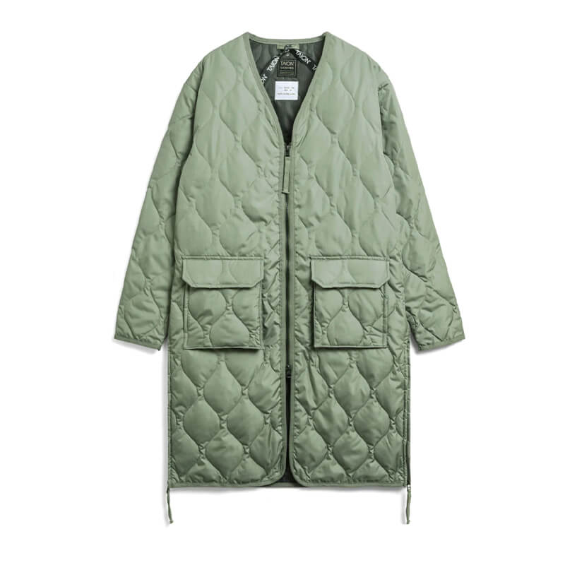 The Military V-Neck Coat – Sage Green is included in Taion’s Fw23 collection and features: