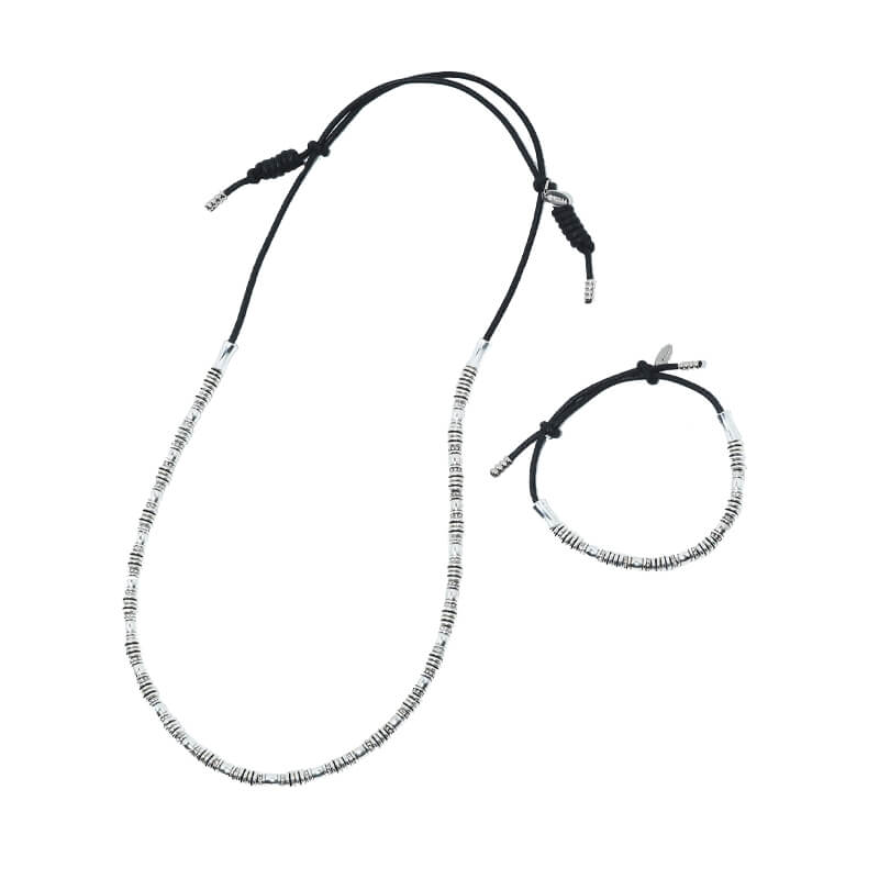 TOGA ARCHIVES Beads Necklace & Bangle Set – Silver: Add a sophisticated touch to any outfit thanks to these Fringe Bangle Set Toga Pulla. The Tokyo-based brand has garnered a devoted fanbase for its avant-garde aesthetics and attention to detail – showcased with this adjustable Bangle & Necklace set. Crafted from silver-tone metal, this TOGA ARCHIVES Beads Necklace & Bangle Set – Silver is included in the last FW23 collection and features: