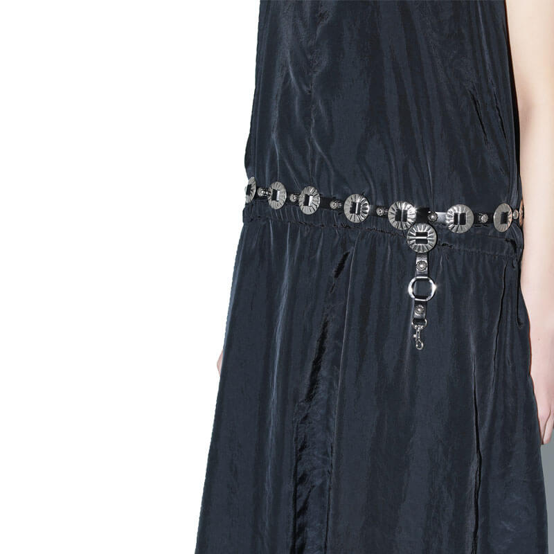 Included in the last Fall25 collection, this TOGA ARCHIVES Concho Narrow Belt – Black features: