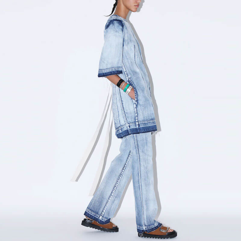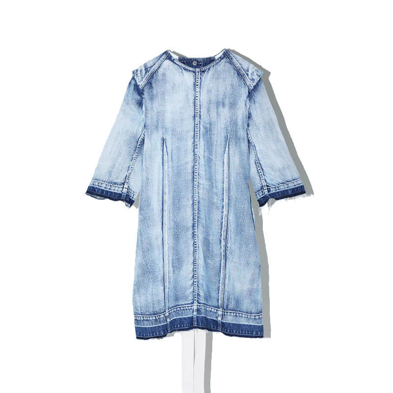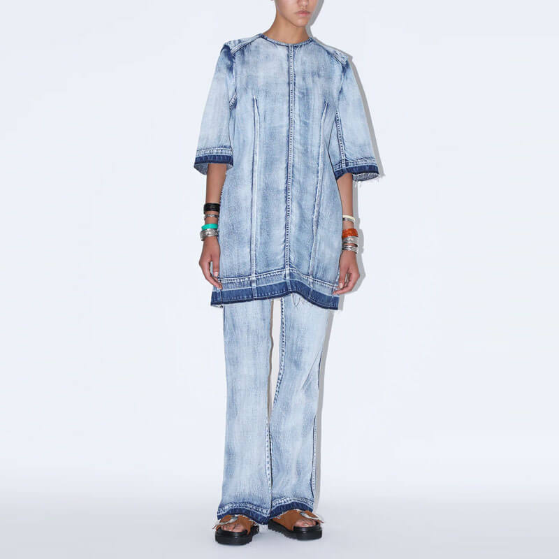 TOGA ARCHIVES Denim Dress – Light Blue: Never one to shy away from distinctive designs, Tokyo-based brand Toga Pulla showcases the high-quality tailoring of its Japanese homeland with this unique dress. Cut from bleached denim, this chic piece features an open-back design and tie detailing – guaranteed to make it the most eye-catching in your lineup. Elsewhere, shoulder pads and distressed details hail back to the golden era of bold fashion: 80s America. Included in the last Spring-Summer23 collection, this TOGA ARCHIVES Denim Dress – Light Blue features: