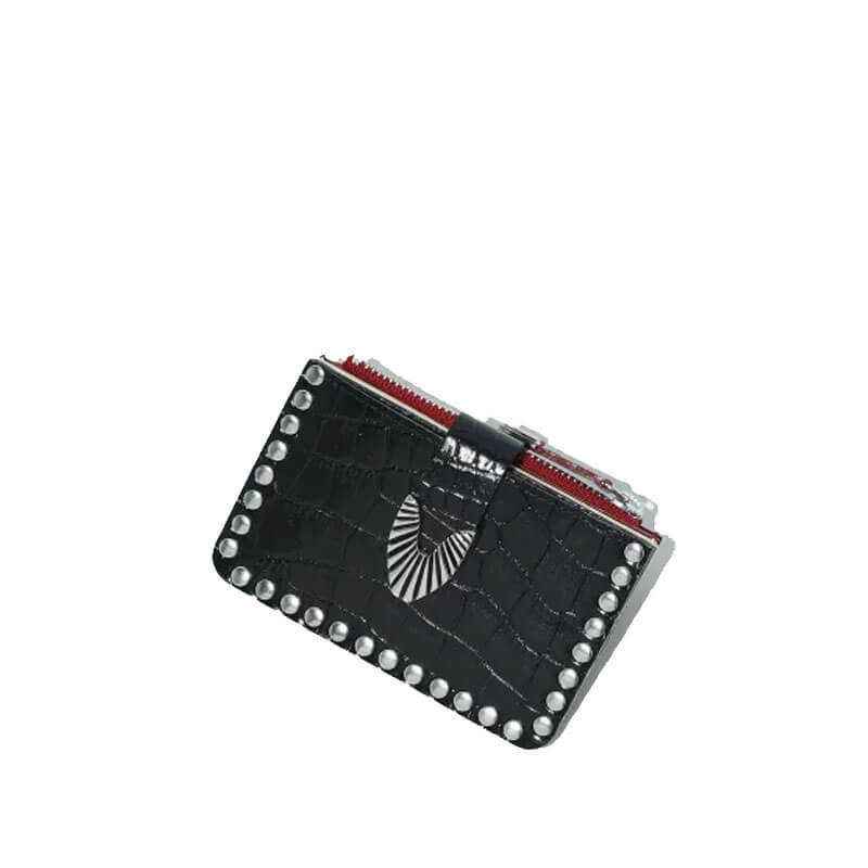 TOGA ARCHIVES Leather Wallet Studs – Mix Black: A wallet with a traditional American influence Toga Pulla’s pouch adds metallic studs and concho detailing onto cowhide leather. To one side you could be fooled to thinking it’s the end of a belt buckle. Included in Toga Archives’ FW22 collection, these Leather Wallet Studs – Black features: