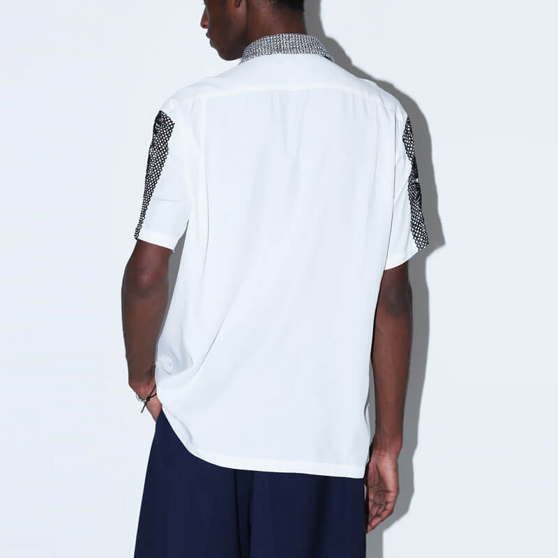 TOGA ARCHIVES Rayon Mesh Shirt – White: Short sleeves shirt crafted in soft rayon material. This piece is detailed with intricate embroideries at front – showcasing the Tokyo-based brand’s attention to detail – and a boxy fit for continuous comfort, however you style it. Included in the last Spring-Summer23 collection, this TOGA ARCHIVES Rayon Mesh Shirt – White features: