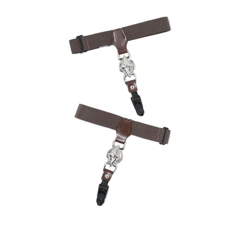 TOGA ARCHIVES Socks Gater – Brown: Make a statement with this socks gater. The charms suspended on a cowhide premium leather cord has adjustable length and draw the eye and invite interpretation. Created using a nylon ribbon with adjustable length and completed with Western-style metal detail, this gorgeous piece shows the label’s love of Americana-inspired theming.