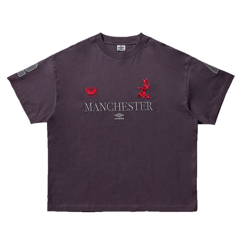 UMBRO Manc T-Shirt – Dark Purple: For Autumn/Winter 2025, long-term partners Slam Jam and Umbro unveil a bold new collection, seamlessly blending the distinguished tailoring traditions of Britain and Italy with the dynamic energy of sportswear. “Cult Unity” serves as the defining motif, celebrating the fusion of these two iconic cultures.