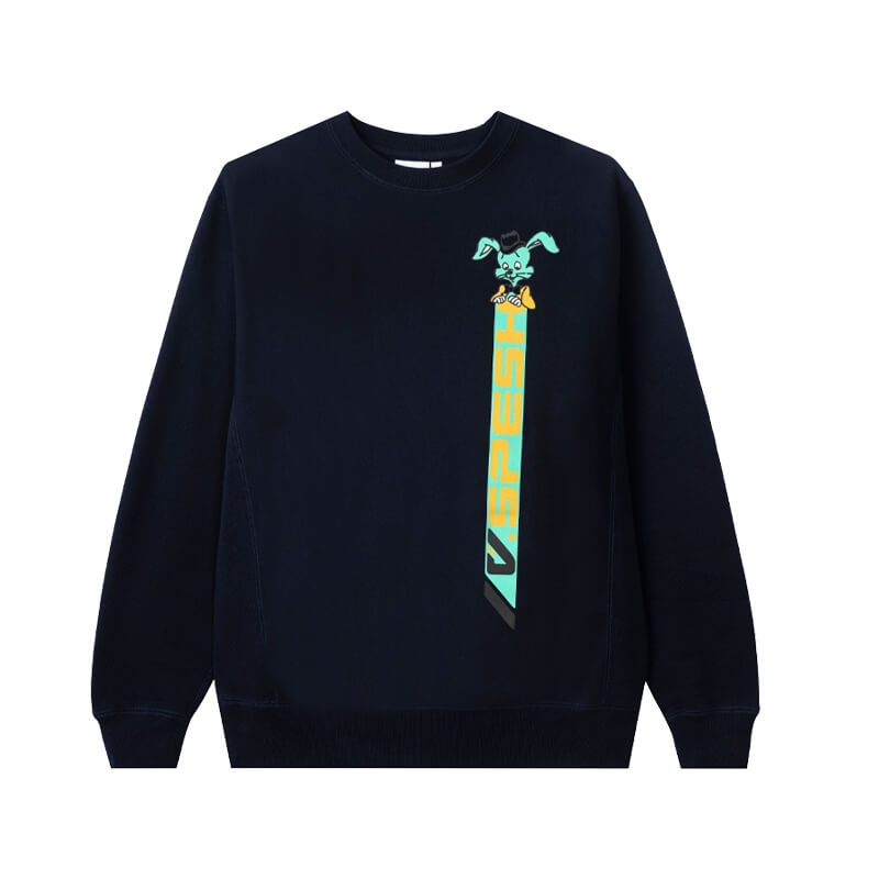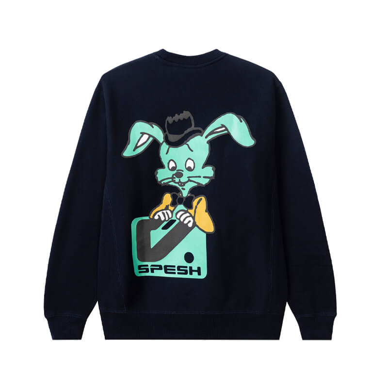 VERY SPECIAL by GASIUS V Spesh Crewneck Sweater – Navy: Gasius, the label of British artist Russell Maurice, has been able to reap more and more enthusiasm for his bizarre artworks over the years. Gasius started in 1993 with 10 hand-painted T-shirts for friends and has been producing ever since, almost 30 years later. Gasius is inspired by amongst many other things… Graffiti, early rave, classic skate graphics, Fuct, early 80’s comics, and pizza. This crewneck features: