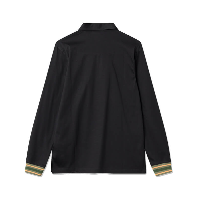 WOOD WOOD Boycie LS Polo – Black: Regular-fit long sleeve polo with rib stripe panel details on cuffs. Included in the lastest Spring23 collection, this WOOD WOOD Boycie LS Polo – Black features: