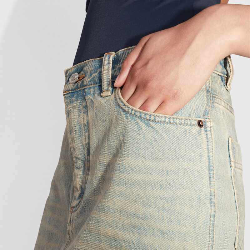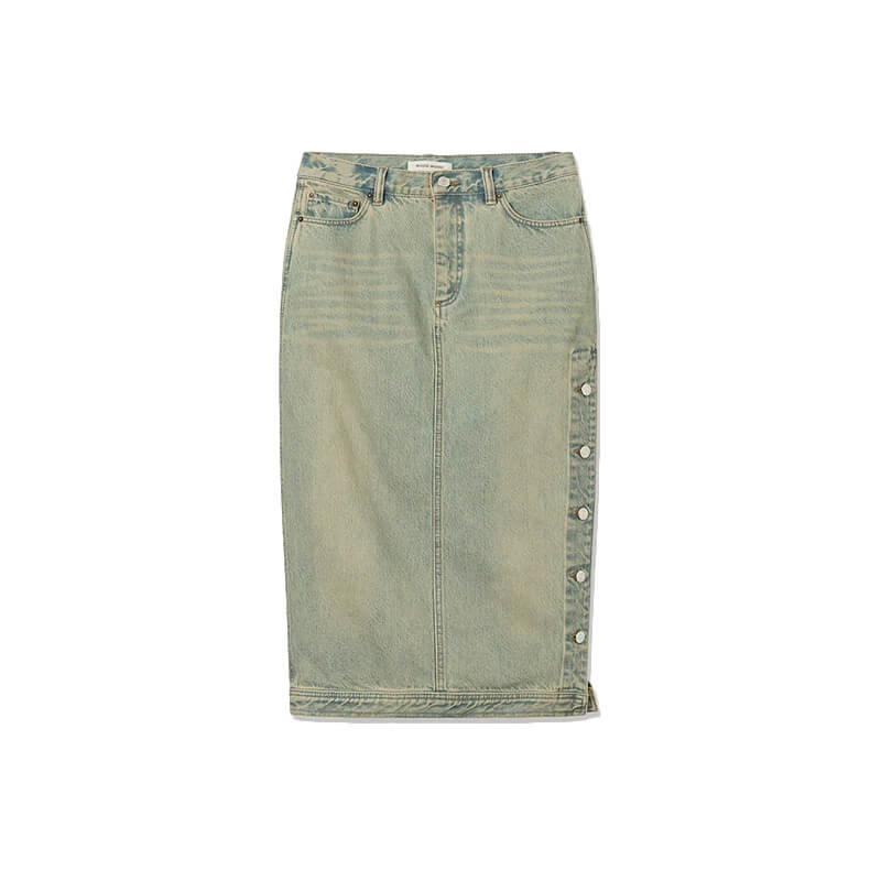 WOOD WOOD Drew Denim Skirt – Vintage Beige: Women’s skirt made from 100% organic cotton. This denim skirt offer a flattering silhouette, featuring three front pockets, two back pockets, a regular fit, and buttons on the side.. Included in the latest Spring23 collection, this WOOD WOOD Drew Denim Skirt – Vintage Beige features: