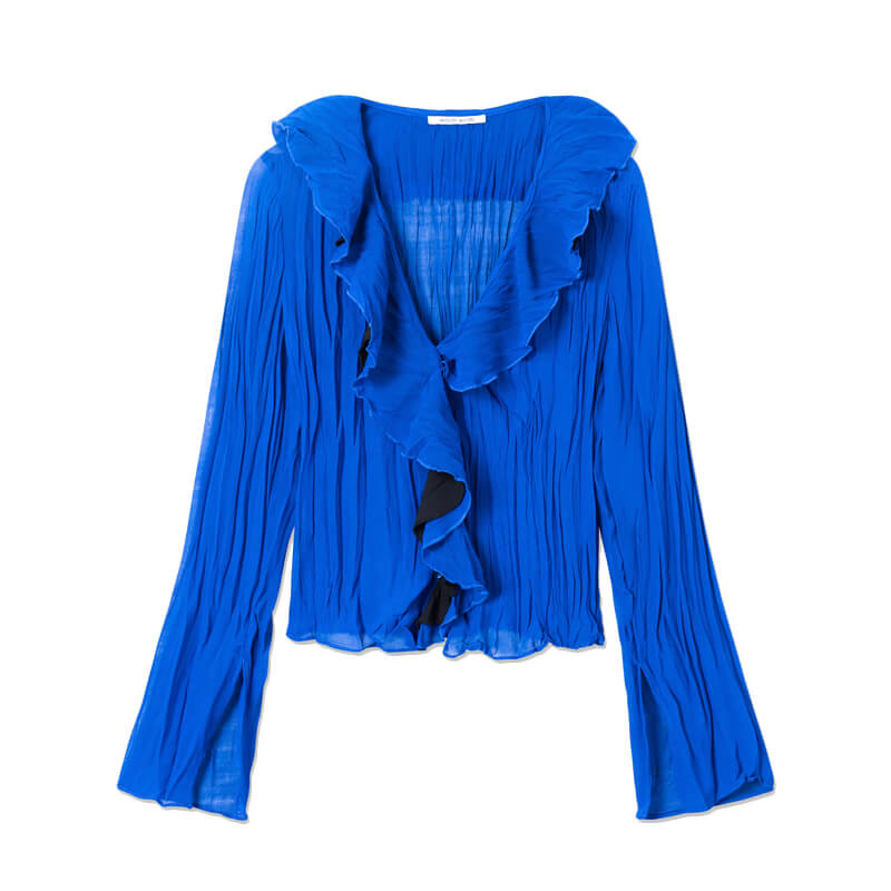 WOOD WOOD Hannah Chiffon Blouse – Royal Blue: Longsleeve top with ruffled collar, crafted in a soft chiffon fabric. Included in the lastest Spring23 collection, this WOOD WOOD Hannah Chiffon Blouse – Royal Blue features: