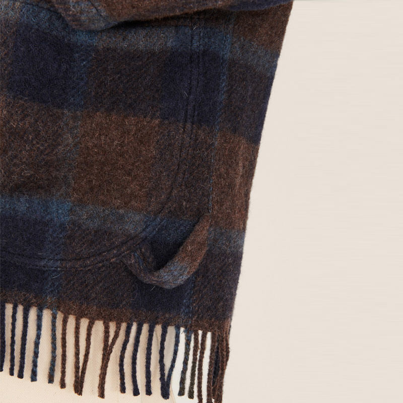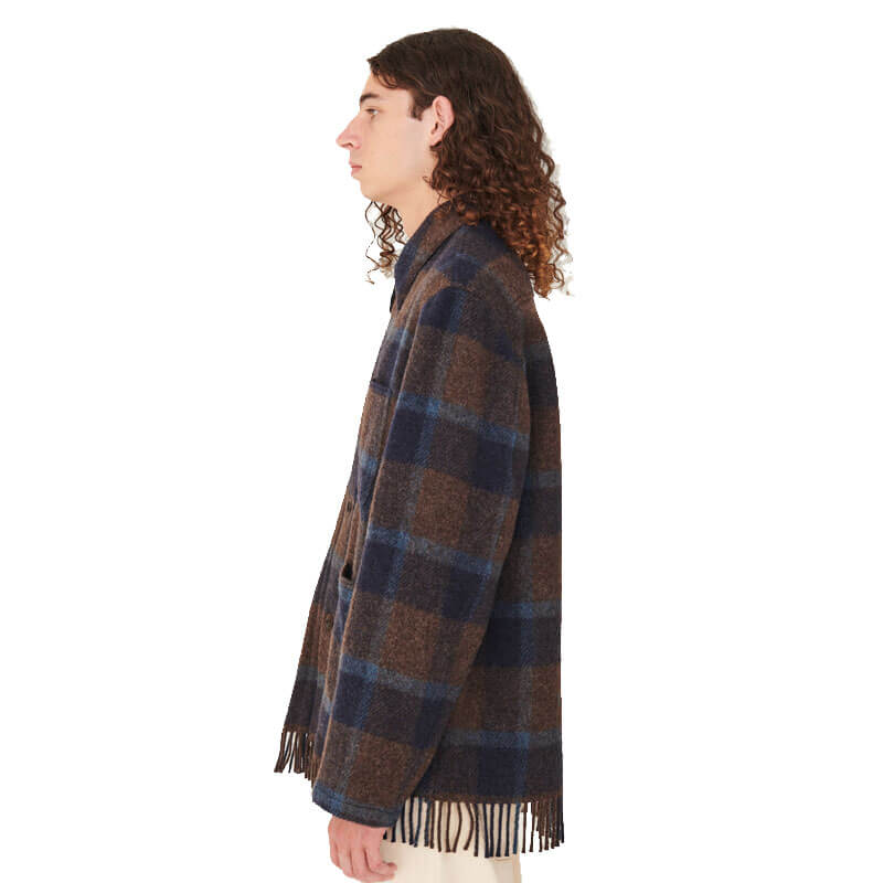 YMC Labour Chore Fringe Jacket – Brown Multi: Workwear-style chore jacket with a fringe hem. Cut in a wool blanket check inspired by vintage hunting pieces, this YMC Labour Chore Fringe Jacket – Brown Multi features: