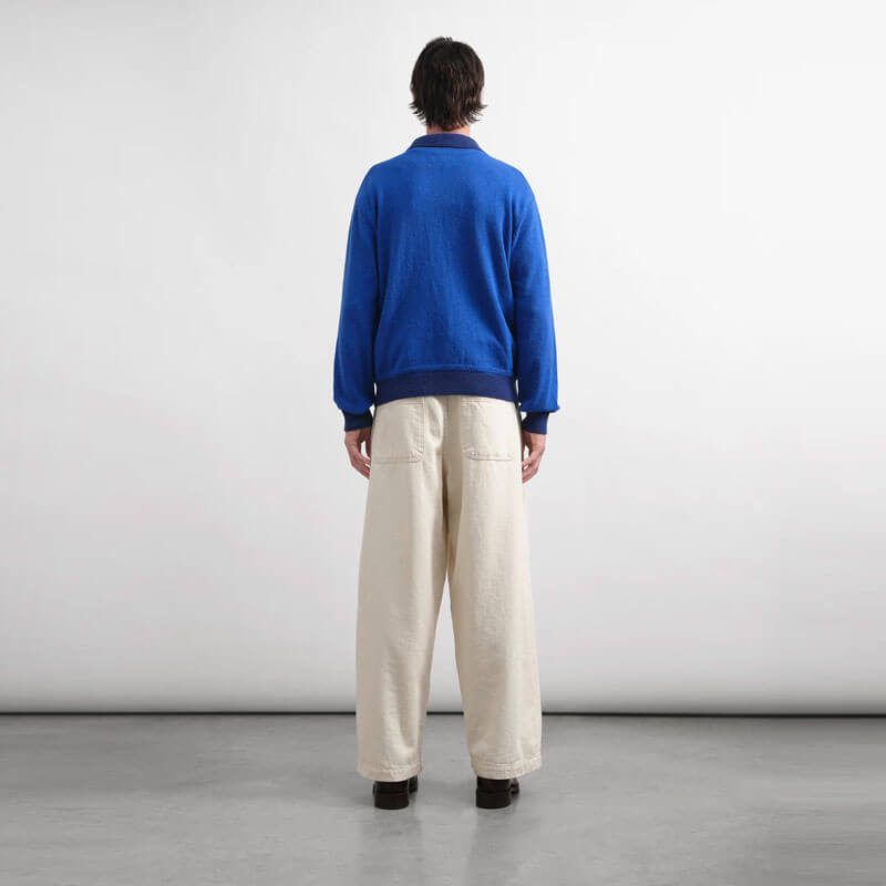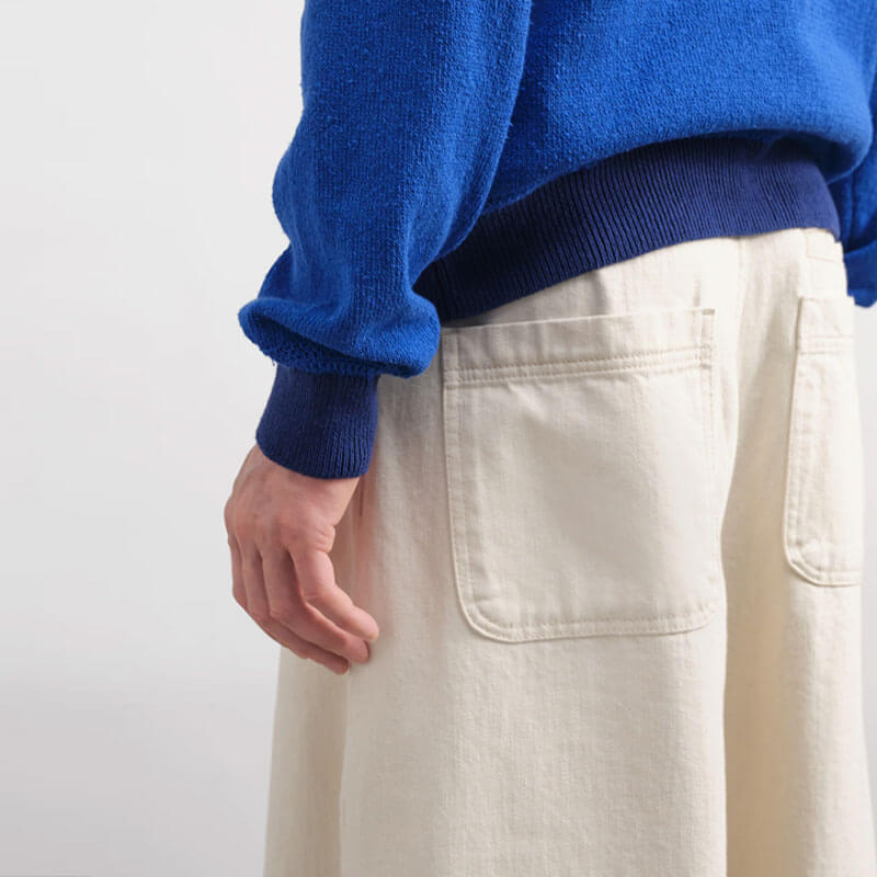 YMC Replacement Jeans – Ecru: Wide leg denim jean crafted in 13oz organic and recycled cotton denim. Designed to be worn with relaxed fit, this jeans pant features a 5 pockets design with back slit pocket detail.