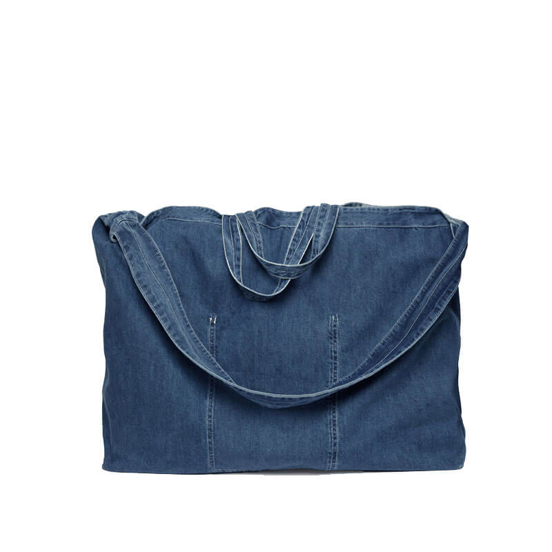 YMC Tote Bag – Washed Indigo: Large denim tote bag crafted in 8.6oz indigo denim cotton recycled blend fabric. Included in the last Spring-Summer24, this YMC Tote Bag – Washed Indigo features: