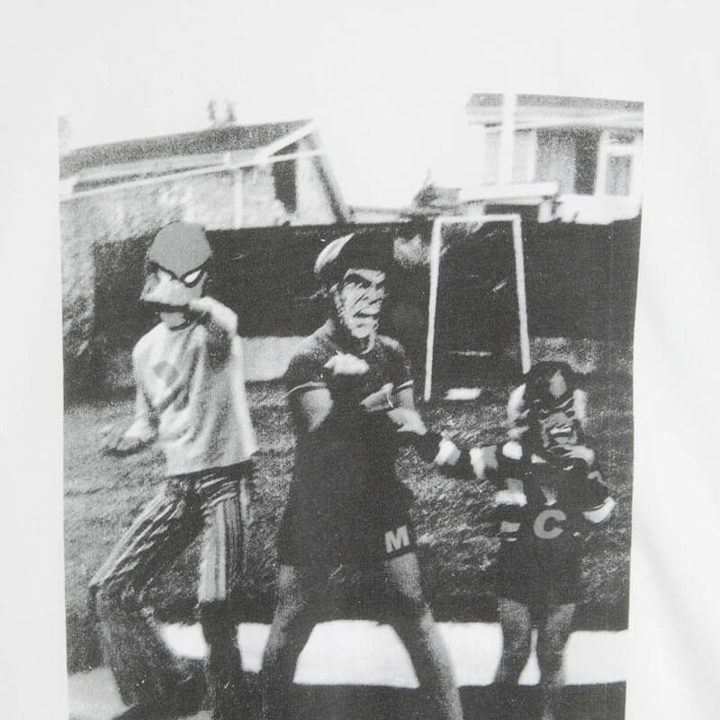 YMC Triple Superkids Tee – White: Oversize tee in ultra soft organic cotton. Designed to be worn loose for a relaxed feel. Pigment-dyed for an authentic finish, with digital print on front.